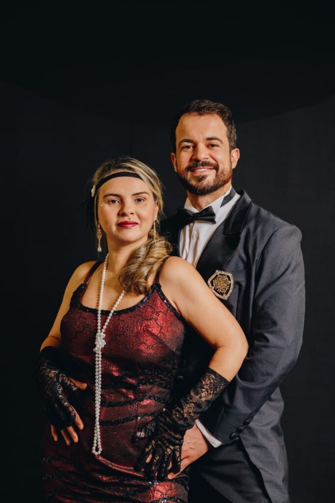 A encenação alterna os bastidores de um antigo teatro, evocando o espaço artístico onde Adriana constrói sua trajetória como atriz, e uma casa de campo. A mudança de ambientes reforça o contraste entre o mundo público do palco e os conflitos íntimos dos personagens. Embora criada no período romântico, a encenação transporta a trama para os “anos loucos” de 1920, época das chamadas melindrosas: mulheres que desafiaram padrões ao adotar vestidos mais curtos e maior autonomia social. Os figurinos, criados por…, acompanham essa proposta estética ao revisitar os códigos visuais da época sem deslocar completamente a obra para o presente. Assim, a criação estabelece um diálogo entre passado e contemporaneidade, reforçando a atmosfera histórica da montagem.