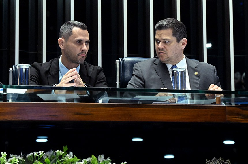 Autor da PEC que gerou a emenda, senador Cleitinho, ao lado do presidente do Congresso, Davi Alcolumbre. /Foto: Carlos Moura/Agência Senado