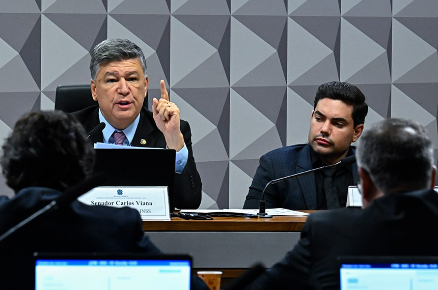 O presidente da CPMI, Carlos Viana, com Felipe Macedo Gomes, que depôs como testemunha./ Foto: